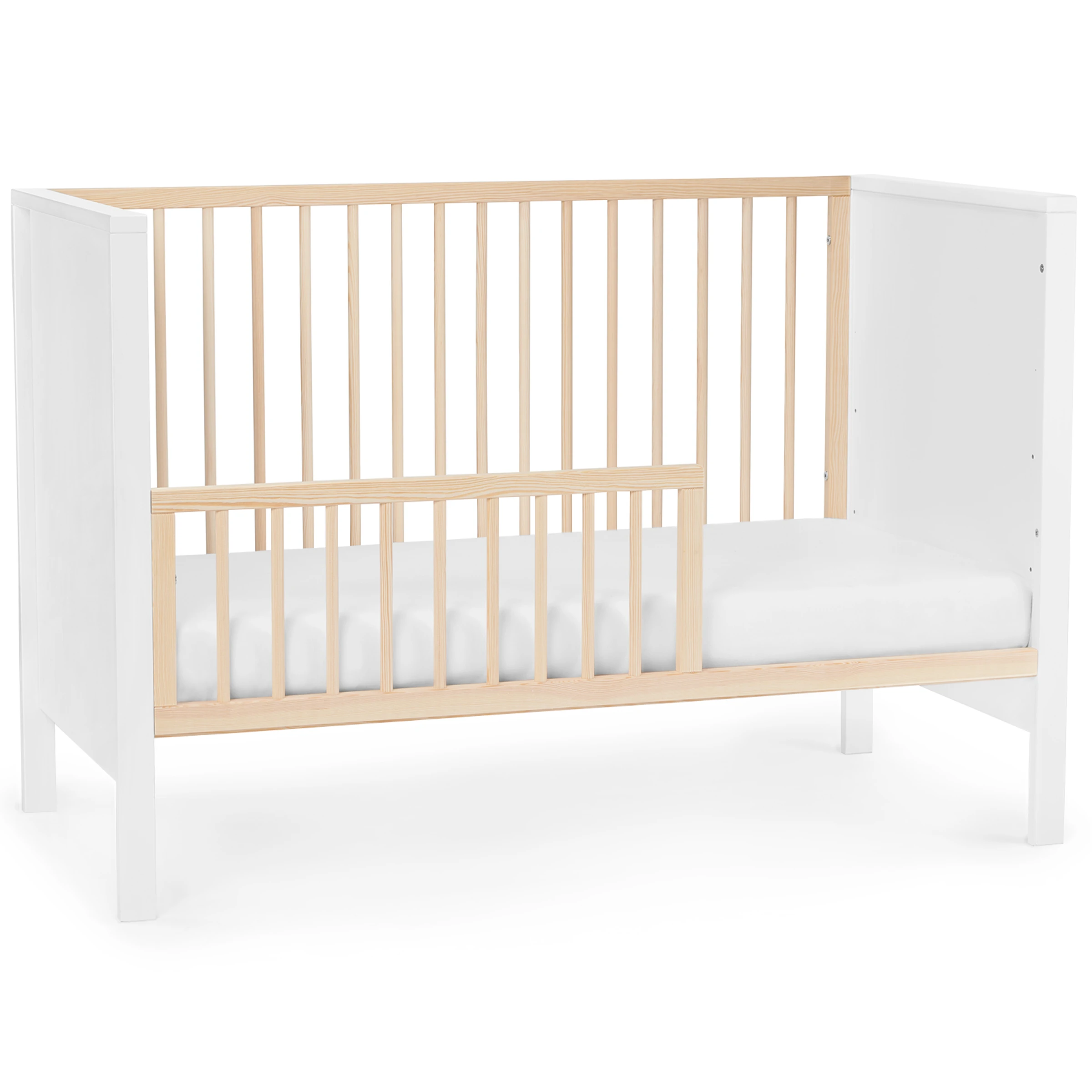 MIA ist ein klassisches Holzbett, das Ihrem Kind viele Jahre dienen wird. Der Bettboden kann auf 3 Ebenen angebracht werden, so dass Sie das Bett problemlos an Ihre BedĂĽrfnisse und die Ihres Kindes anpassen können. Und wenn Ihr Sprössling etwas größer ist, können Sie MIA in eine Liege fĂĽr ältere Kinder umwandeln. Das Bett ist aus sicherem bei der Nutzung und beständigem Kiefernholz und einer laminierten Platte hergestellt. Das minimalistische, skandinavische Design sorgt dagegen dafĂĽr, dass sich MIA sowohl im Jungen- als auch Mädchenzimmer hervorragend präsentieren wird. Die Schlaffläche beträgt 120×60 cm (die Matratze ist im Set enthalten). Beim Kauf des MIA-Bettes kaufen Sie zwei Produkte in einem!